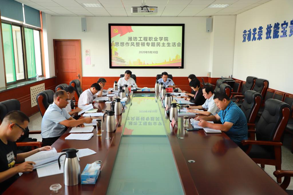 根据潍坊市思想作风整顿工作专班办公室《关于召开专题民主生活会有关事项的通知》要求,9月30日上午,学院党委在海岱阁220会议室召开专题民主生活会。党委书记肖明胜,党委副书记、院长高立伯,院领导李琳、王金明、那菊华、韩振华,党委委员、组织人事处处长冯永光,党委委员、宣传部部长赵立增,党委委员、党政办公室主任、统战部部长赵庆松出席会议。市纪委市监委第三监督检查室副主任,一级主任科员马华昌参加会议。会议由肖明胜主持。
