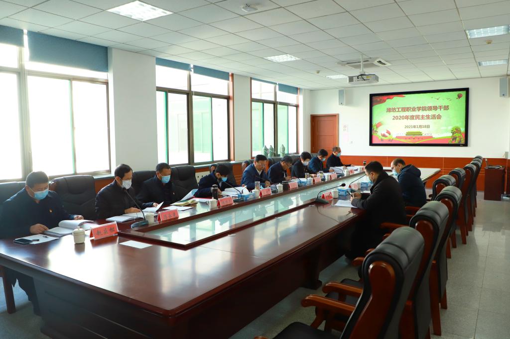 1月18日,学院领导班子在海岱阁220会议室召开了2020年度民主生活会。市委统战部民族工作科科长丁建营、市委组织部组织一科三级主任科员李春辉到会指导。学院党委书记肖明胜主持会议,党委班子全体成员参加会议。