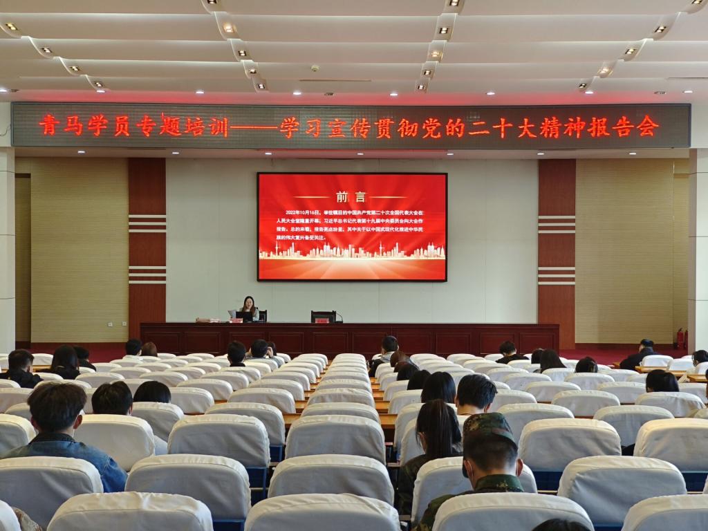 11月24日下午,团委学生处举行青马学员学习宣传贯彻党的二十大精神专题报告会,马克思主义学院思政课教师、学院党的二十大精神宣讲团成员李小飞作了题为“以中国式现代化全面推进中华民族伟大复兴”的专题报告,2022年校级青马培训班学员参加活动。