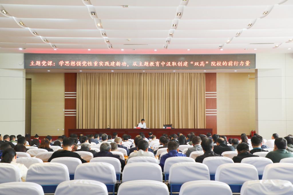 为扎实开展学习贯彻习近平新时代中国特色社会主义思想主题教育,10月12日上午,党委书记、党委主题教育领导小组组长吕尧良在海岱阁学术报告厅作了题为“学思想强党性重实践建新功,从主题教育中汲取创建‘双高’院校的前行力量”专题党课。党委副书记、院长王忠山主持,党委领导班子成员和副科级及以上干部参加。