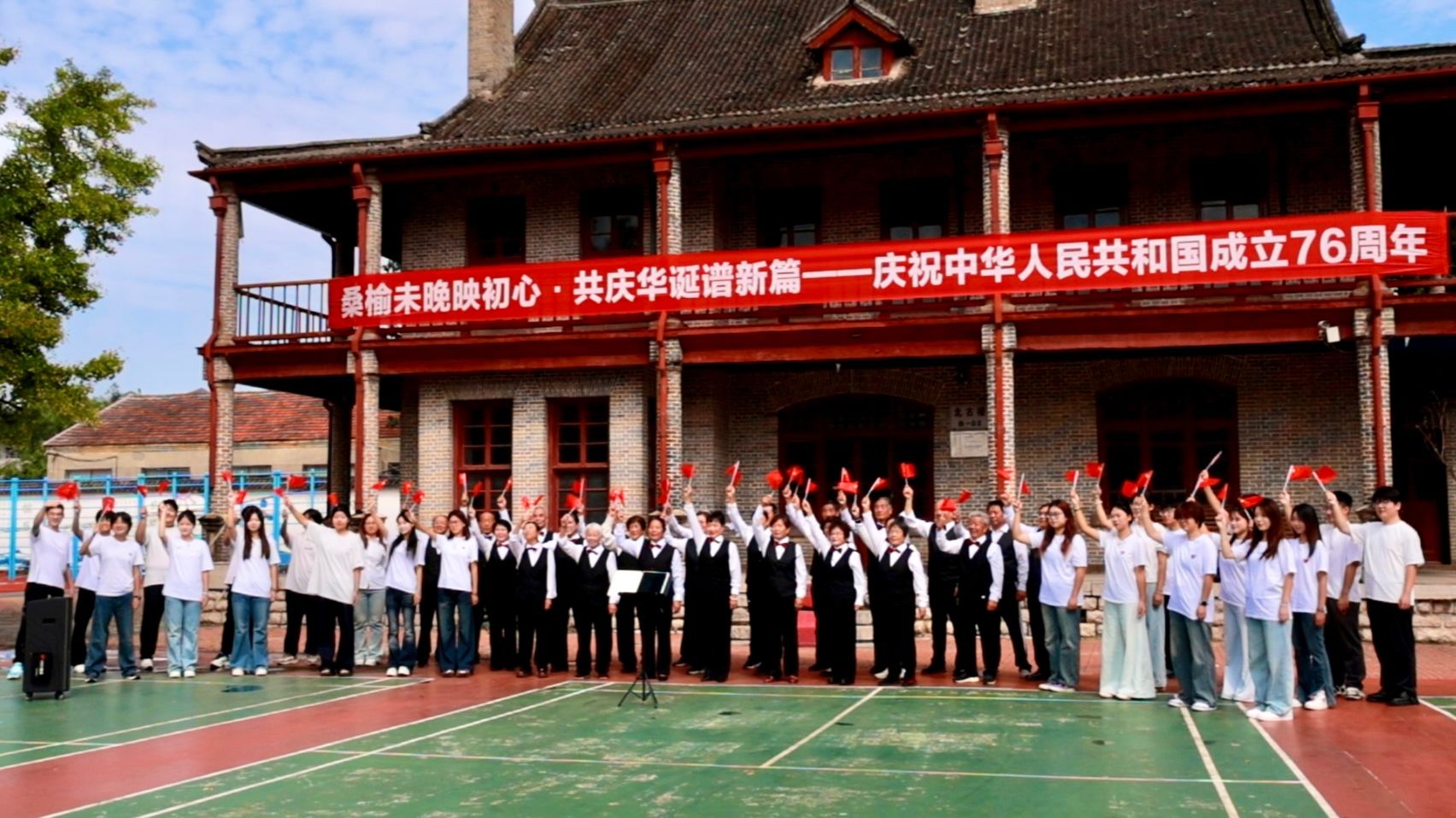 活动现场,由学院老干部组成的银龄合唱团率先登场。老干部们精神抖擞、意气风发,身着整齐服装,以铿锵有力的合唱拉开活动序幕。《歌唱祖国》《我和我的祖国》等经典红色歌曲相继唱响,激昂的旋律、嘹亮的歌声回荡在现场每个角落。演唱过程中,老干部们眼神坚定、情感饱满,每一句歌词都凝聚着对祖国、对党的无限热爱与深情祝福,也深深感染了在场的青年师生。不少青年学子自发跟唱,老少歌声交融,形成了跨越代际的爱国共鸣。