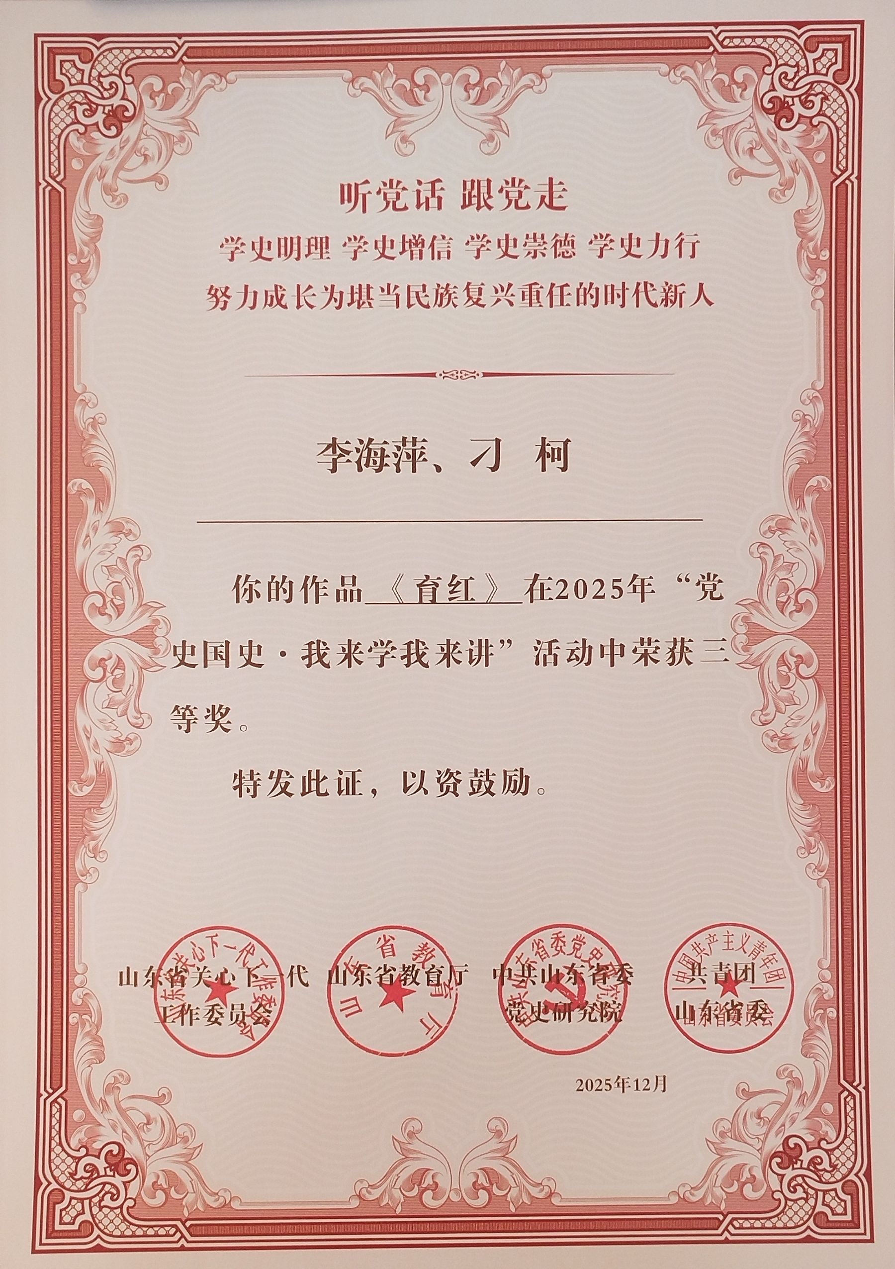 为深入贯彻2025年“党史国史・我来学我来讲”活动初衷,进一步发挥优秀获奖作品的示范引领作用,深化党史国史学习教育成果,切实把获奖成效转化为育人实效,现于将获奖作品进行展播,诚邀全院师生共学党史国史、感悟红色精神、汲取奋进力量,让红色基因在校园落地生根、代代相传!